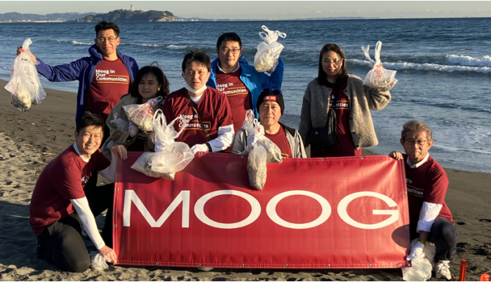 Moog Japan の従業員は Kanagawa Coastal Environmental Foundation と提携して、定期的にビーチの清掃活動を主催し、川から海に流れ込むプラスチック廃棄物を除去して海岸線を美化しています。